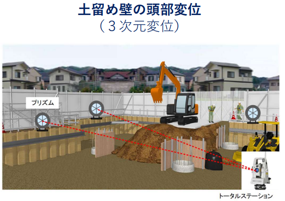 | 周辺の影響 | 地表面・構造物挙動・変位 | 地表面・構造物の沈下、隆起、傾斜 | 連通管式変位計 |